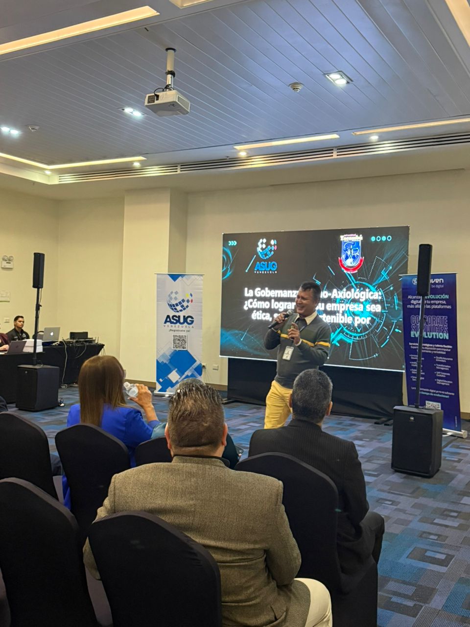 La jornada continuó con un bloque académico ofrecido por la Universidad Yacambú. La docente Susana Apóstol destacó el papel de los Sistemas Integrados (ERP) como herramientas esenciales para la planificación y auditoría fiscal. Complementariamente, el docente Egduard Martínez abordó la Gobernanza Tecnoaxiológica, un tema crucial para el desarrollo de empresas que buscan ser éticas y sostenibles.